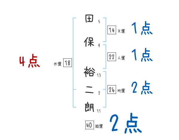 田保裕二朗さんの画数の鑑定結果