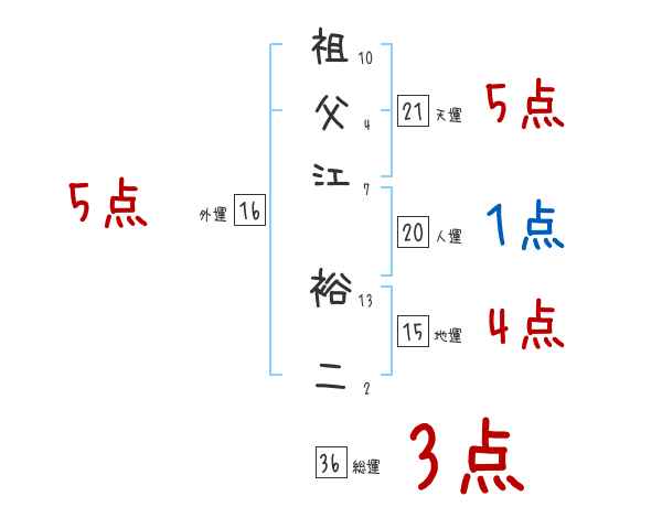 祖父江裕二さんの画数の鑑定結果