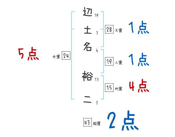 辺土名裕二さんの画数の鑑定結果