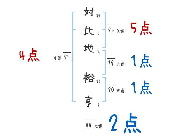 対比地裕亨さんの画数の鑑定結果