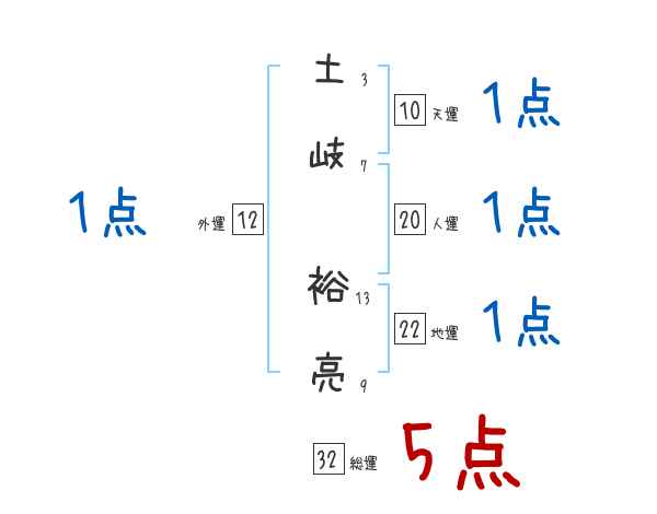 総運![]() | 土岐裕亮さんの総運は32画の5つ星!柔軟性があり成功する。チャンスが多く金運が良い。 あなたの人生を表す1番重要な運勢です。生涯を通じて影響する総合運となり、主に50歳以降の晩年期に影響を及ぼします。 |