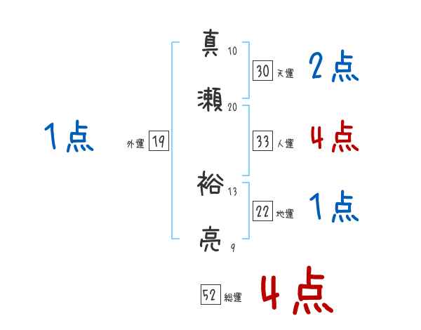 真瀬裕亮さんの画数の鑑定結果