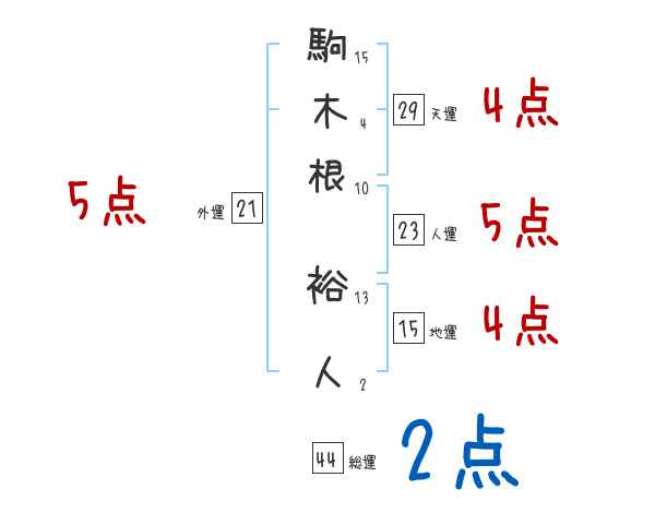 駒木根裕人さんの画数の鑑定結果