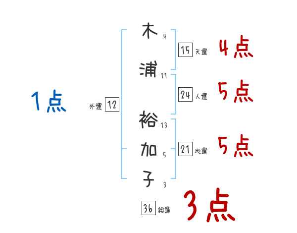 天運![]() | 木浦裕加子さんの天運は15画の4つ星!人徳があり出世する。順調に物事を進め円満な人生。 家系が持つ宿命的な運勢を表します。祖先から受け継いだ苗字ですので自分の力が及びません。家柄を象徴します。 |
