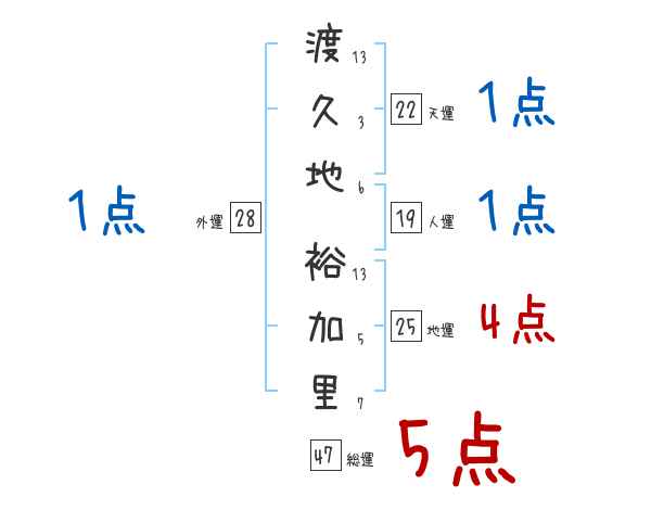 渡久地裕加里さんの画数の鑑定結果