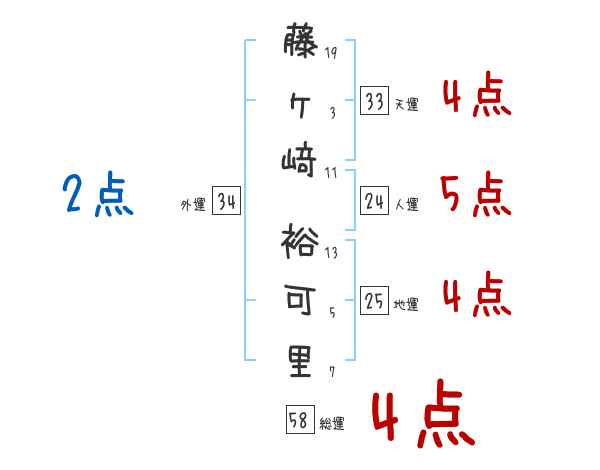 藤ヶ﨑裕可里さんの画数の鑑定結果