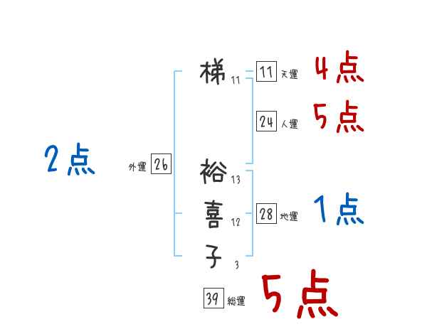 梯裕喜子さんの画数の鑑定結果