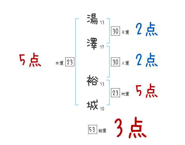 湯澤裕城さんの画数の鑑定結果