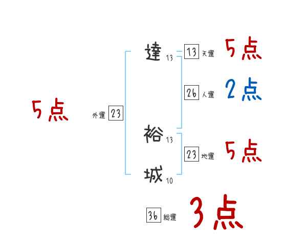 達裕城さんの画数の鑑定結果