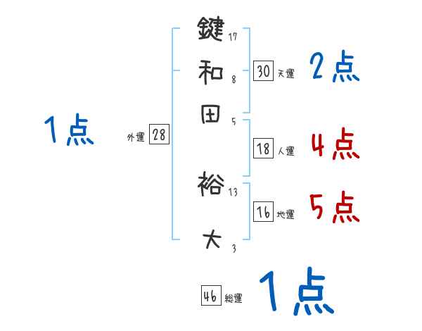 鍵和田裕大さんの画数の鑑定結果
