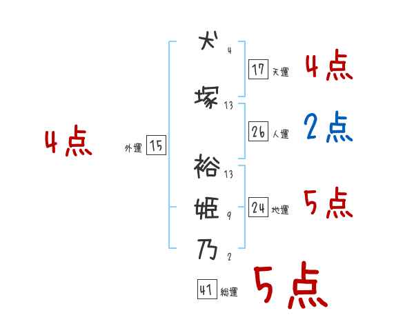 天運![]() | 犬塚裕姫乃さんの天運は17画の4つ星!積極的な行動力。地位を気づき財産を手に入れる。純粋な心と直感力。 家系が持つ宿命的な運勢を表します。祖先から受け継いだ苗字ですので自分の力が及びません。家柄を象徴します。 |