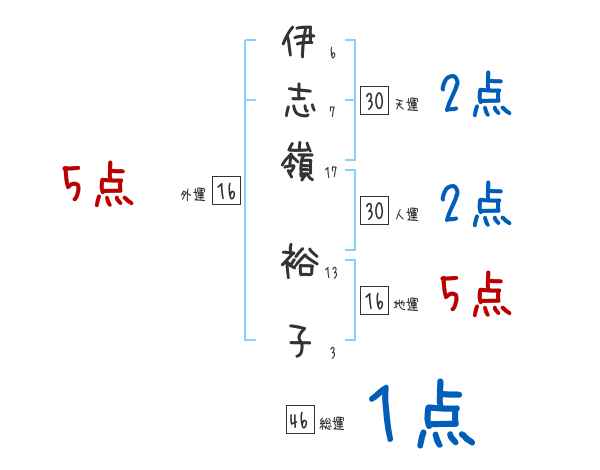 天運![]() | 伊志嶺裕子さんの天運は30画の2つ星!浮き沈みの激しさに注意しましょう。 家系が持つ宿命的な運勢を表します。祖先から受け継いだ苗字ですので自分の力が及びません。家柄を象徴します。 |