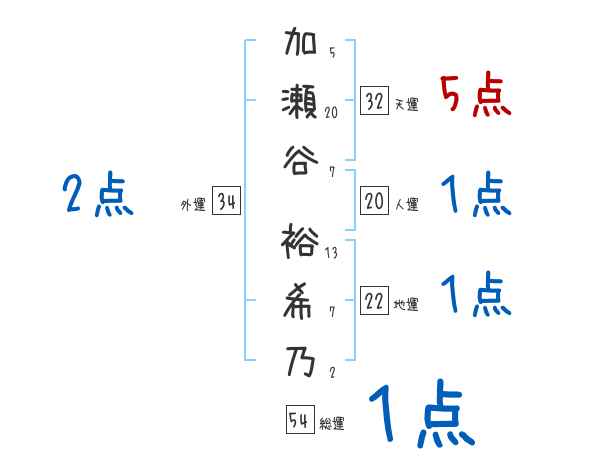 加瀬谷裕希乃さんの画数の鑑定結果