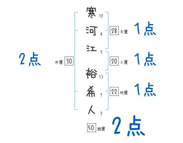 寒河江裕希人さんの画数の鑑定結果