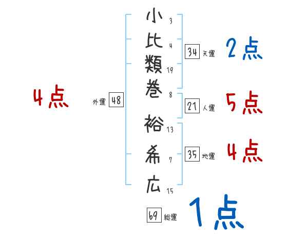 小比類巻裕希広さんの画数の鑑定結果