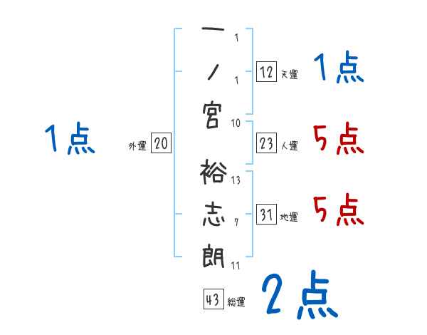 一ノ宮裕志朗さんの画数の鑑定結果