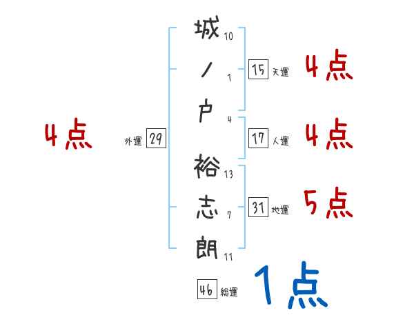 城ノ戸裕志朗さんの外運は29画の4つ星