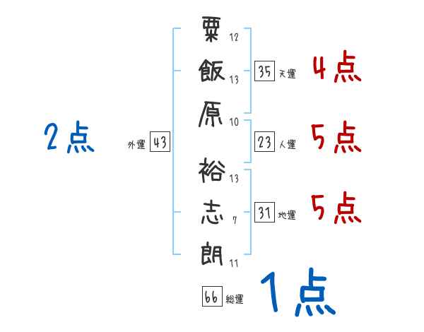 家系が持つ宿命的な運勢を表します。祖先から受け継いだ苗字ですので自分の力が及びません。家柄を象徴します。