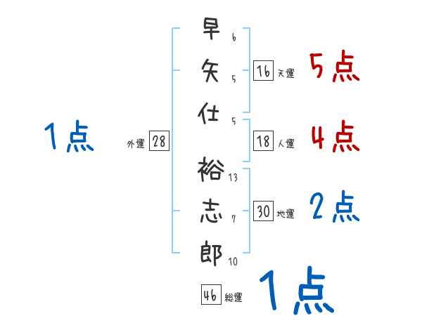 外運![]() | 早矢仕裕志郎さんの外運は28画の1つ星!家庭環境に注意。スポーツで活躍できる能力があるかも。 生活面を象徴する運勢です。外部から受ける影響力を表し、結婚運、家庭運や職場、環境への順応性を表します。 |