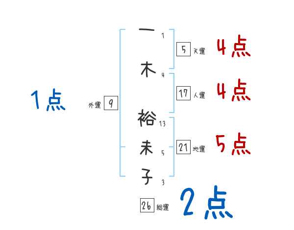 一木裕未子さんの画数の鑑定結果