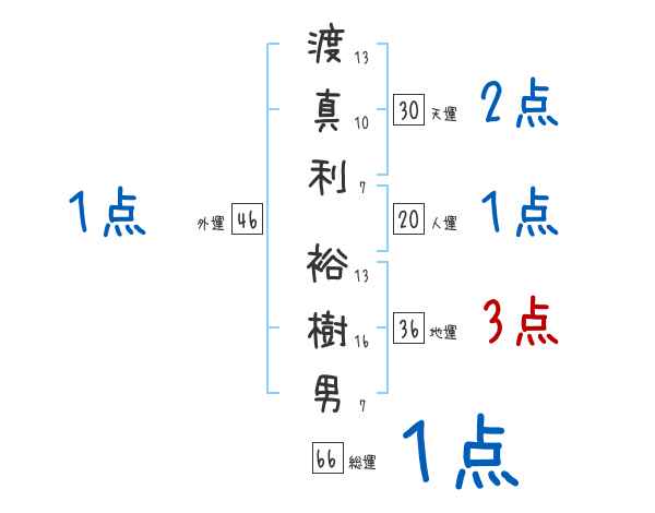 渡真利裕樹男さんの画数の鑑定結果