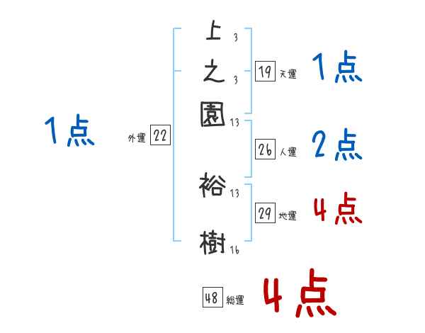 上之園裕樹さんの画数の鑑定結果