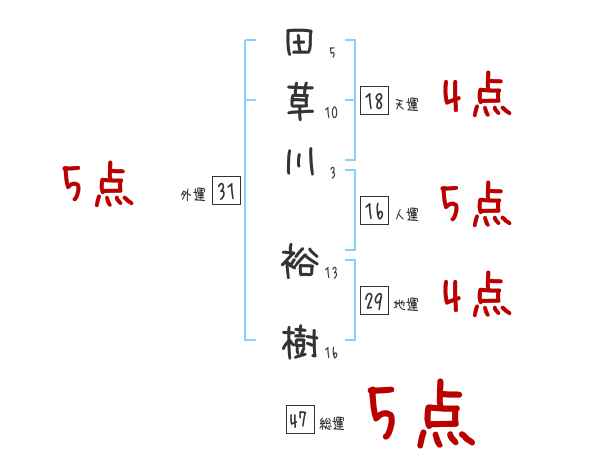 田草川裕樹さんの画数の鑑定結果