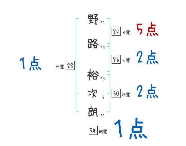 野路裕次朗さんの画数の鑑定結果