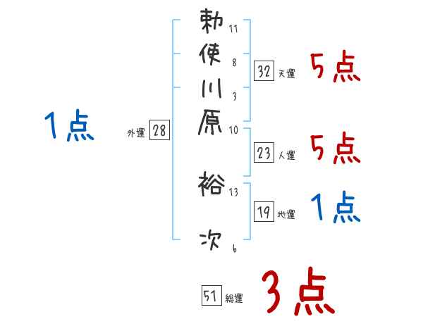 外運![]() | 勅使川原裕次さんの外運は28画の1つ星!家庭環境に注意。スポーツで活躍できる能力があるかも。 生活面を象徴する運勢です。外部から受ける影響力を表し、結婚運、家庭運や職場、環境への順応性を表します。 |
