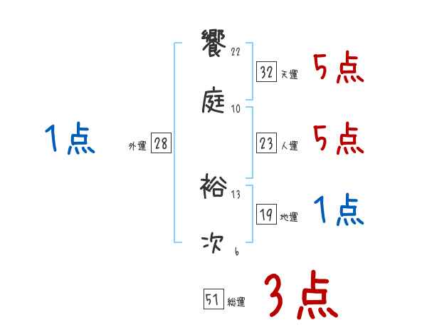 饗庭裕次さんの画数の鑑定結果