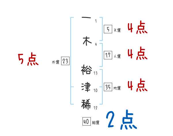 一木裕津稀さんの画数の鑑定結果