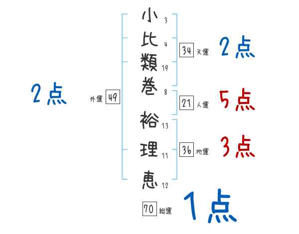 総運![]() | 小比類巻裕理恵さんの総運は70画の1つ星!恵まれず苦境に立たされることも。自滅しないように周りの助けを借りましょう。 あなたの人生を表す1番重要な運勢です。生涯を通じて影響する総合運となり、主に50歳以降の晩年期に影響を及ぼします。 |