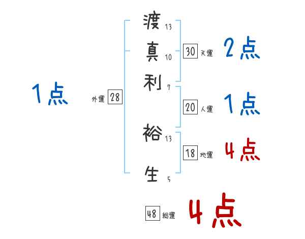 渡真利裕生さんの画数の鑑定結果