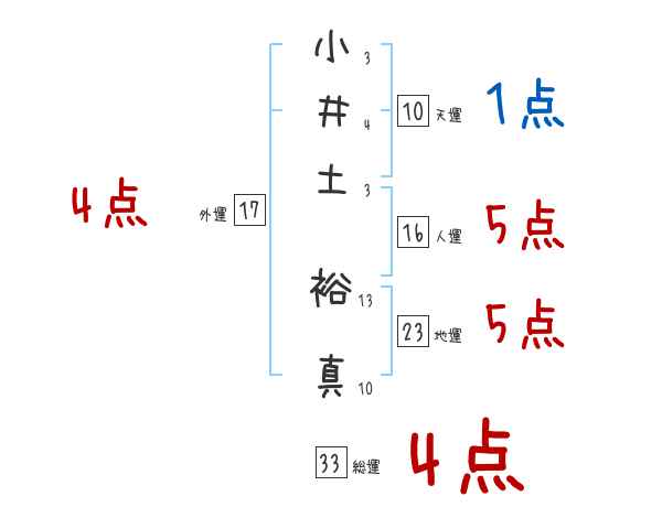 外運![]() | 小井土裕真さんの外運は17画の4つ星!積極的な行動力。地位を気づき財産を手に入れる。純粋な心と直感力。 生活面を象徴する運勢です。外部から受ける影響力を表し、結婚運、家庭運や職場、環境への順応性を表します。 |