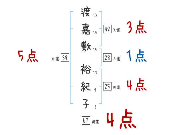 渡嘉敷裕紀子さんの画数の鑑定結果