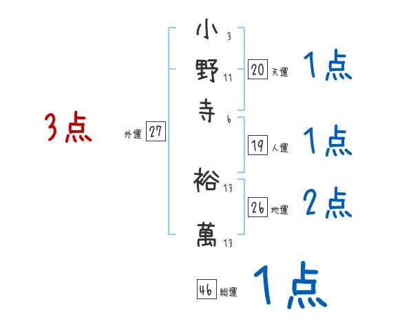 小野寺裕萬さんの画数の鑑定結果