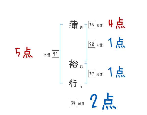 蒲裕行さんの画数の鑑定結果