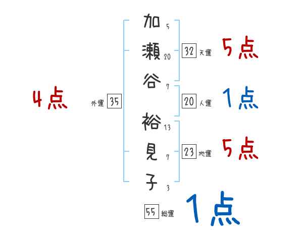 加瀬谷裕見子さんの画数の鑑定結果
