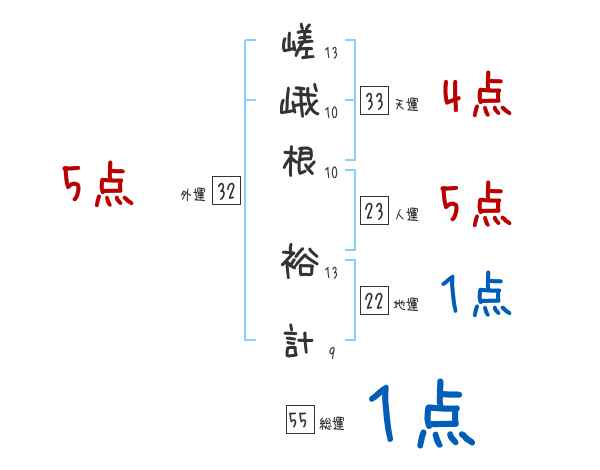 嵯峨根裕計さんの総運は55画の1つ星