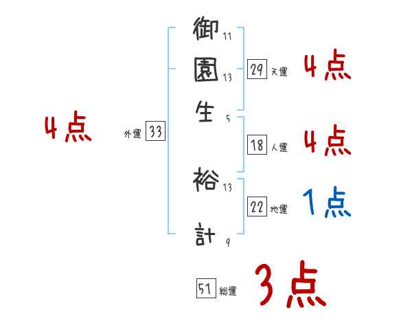 御園生裕計さんの画数の鑑定結果