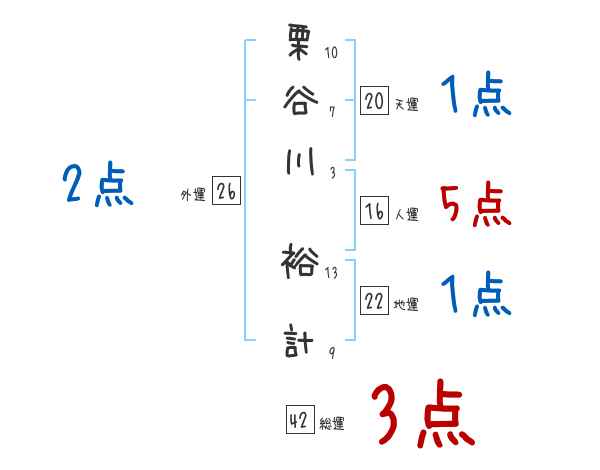 栗谷川裕計さんの画数の鑑定結果