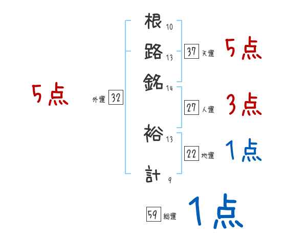 根路銘裕計さんの画数の鑑定結果