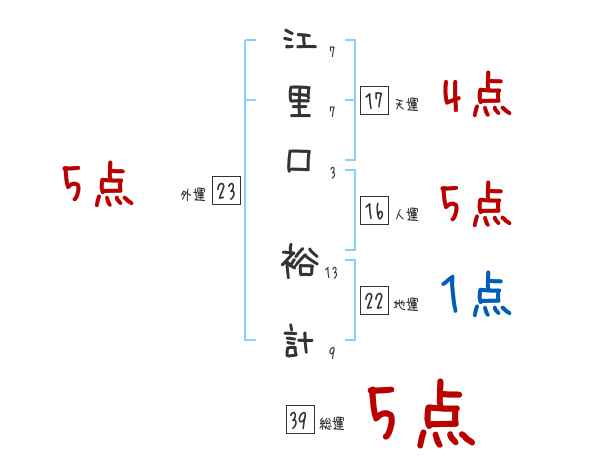 江里口裕計さんの画数の鑑定結果