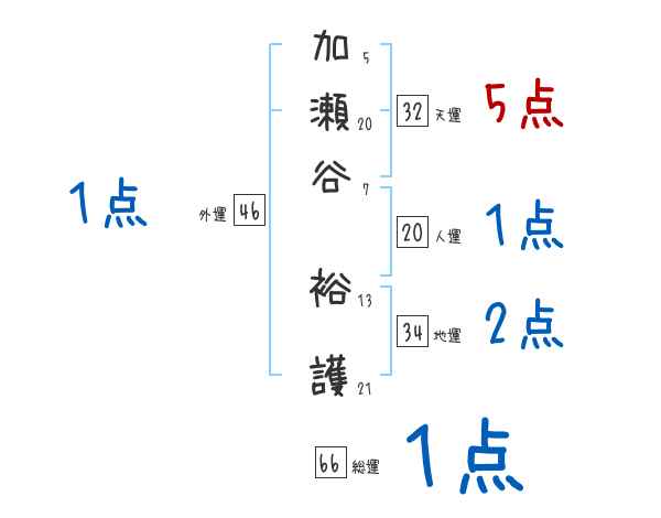 加瀬谷裕護さんの画数の鑑定結果