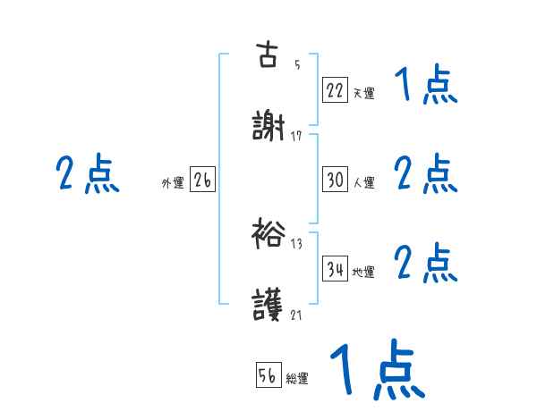 古謝裕護さんの画数の鑑定結果