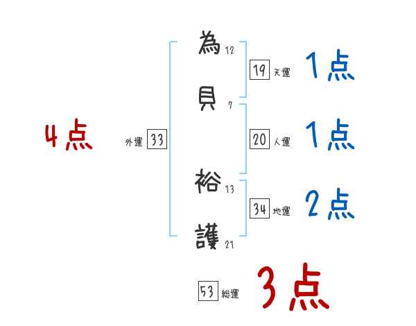 為貝裕護さんの画数の鑑定結果