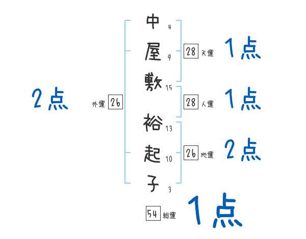 中屋敷裕起子さんの画数の鑑定結果