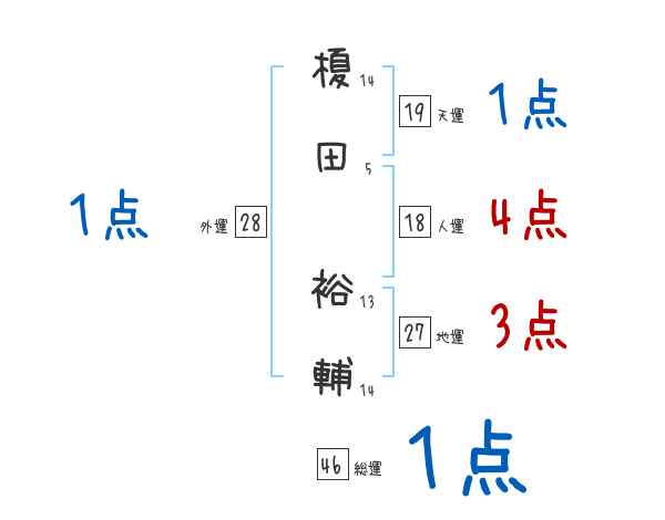 総運![]() | 榎田裕輔さんの総運は46画の1つ星!迷走することが多く苦労するかも。目先のことにとらわれないように。 あなたの人生を表す1番重要な運勢です。生涯を通じて影響する総合運となり、主に50歳以降の晩年期に影響を及ぼします。 |