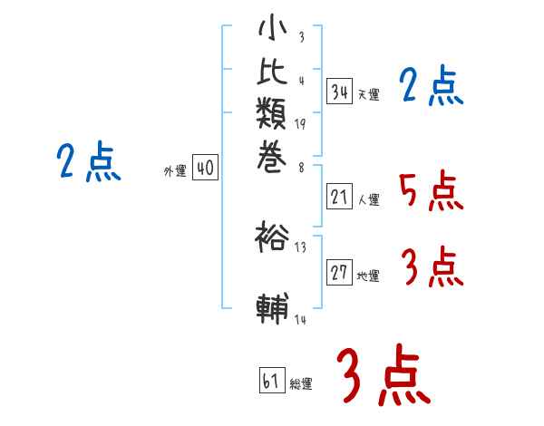 小比類巻裕輔さんの画数の鑑定結果