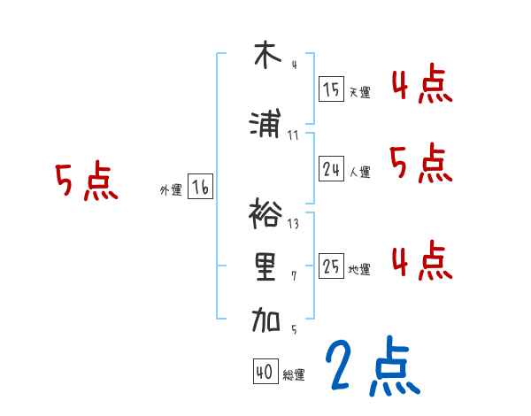 木浦裕里加さんの画数の鑑定結果
